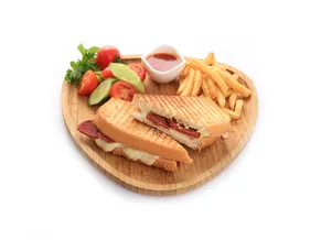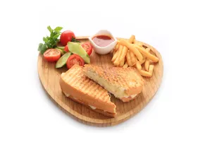 Ayvalık Tost ekmeği arası bol kaşar, cips, yeşillik, tatlı acı sos